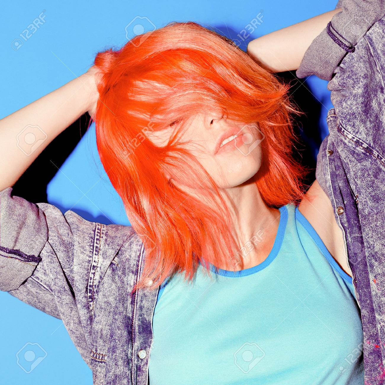 Girl With Orange Hair Stylish Denim Clothing Fashion Color Mix Stock Photo Picture And Royalty Free Image Image 74142617